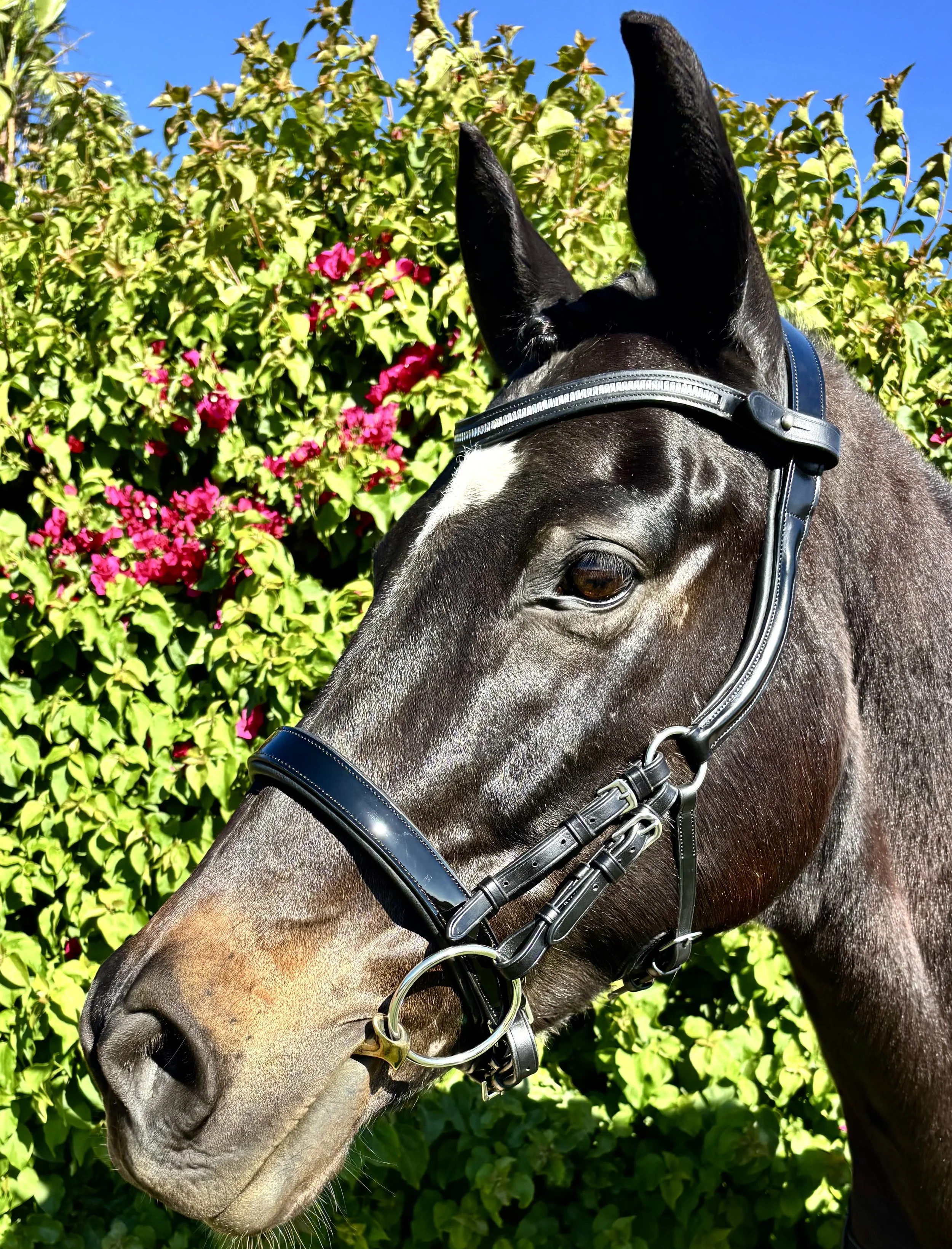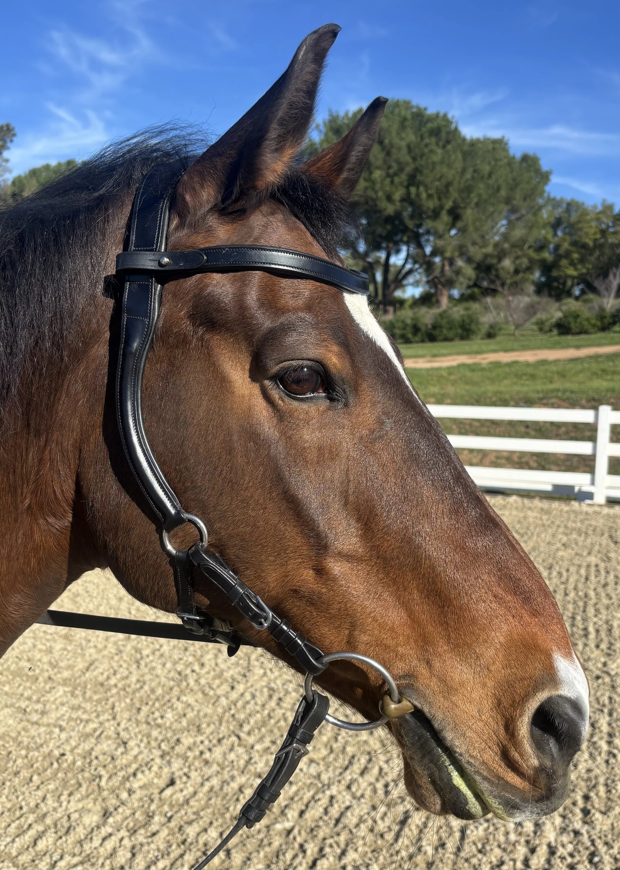 Mero, my 2010 Andalusian gelding, lived a rough life before I found him and bought him out of the situation in 2020. His charro experience resulted in extreme jaw clenching which led to severe THO(Temporohyoid Osteoarthritis). Consistent and loud clicking of his jaw occurred while chewing food and he presented extreme ear sensitivity. A Bilateral Ceratohyoidectomy was successfully performed. Post-Op, I searched for the correct headstall that would offer him comfort. I analyzed all ergonomic bridles yet The Quantum Bridle was the only one that is truly correct, in my opinion, with evidence to prove its significant benefits throughout the body of the horse. Mero (and all of my herd members) LOVE their QUANTUMS!!